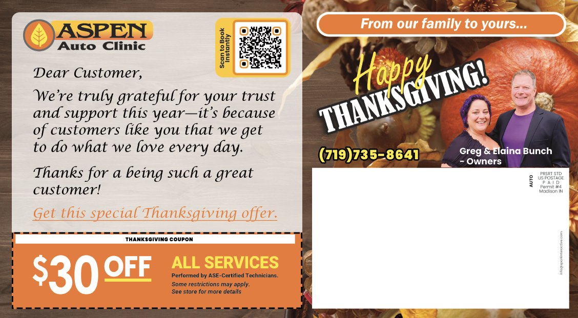 When your customers receive a warm, personalized Thanksgiving card from your shop, it stands out amid the flood of digital noise. That single touchpoint inspires loyalty, sparks referrals, and often leads to a year-end service visit before winter. A small note of gratitude today can create a loyal customer for years to come.